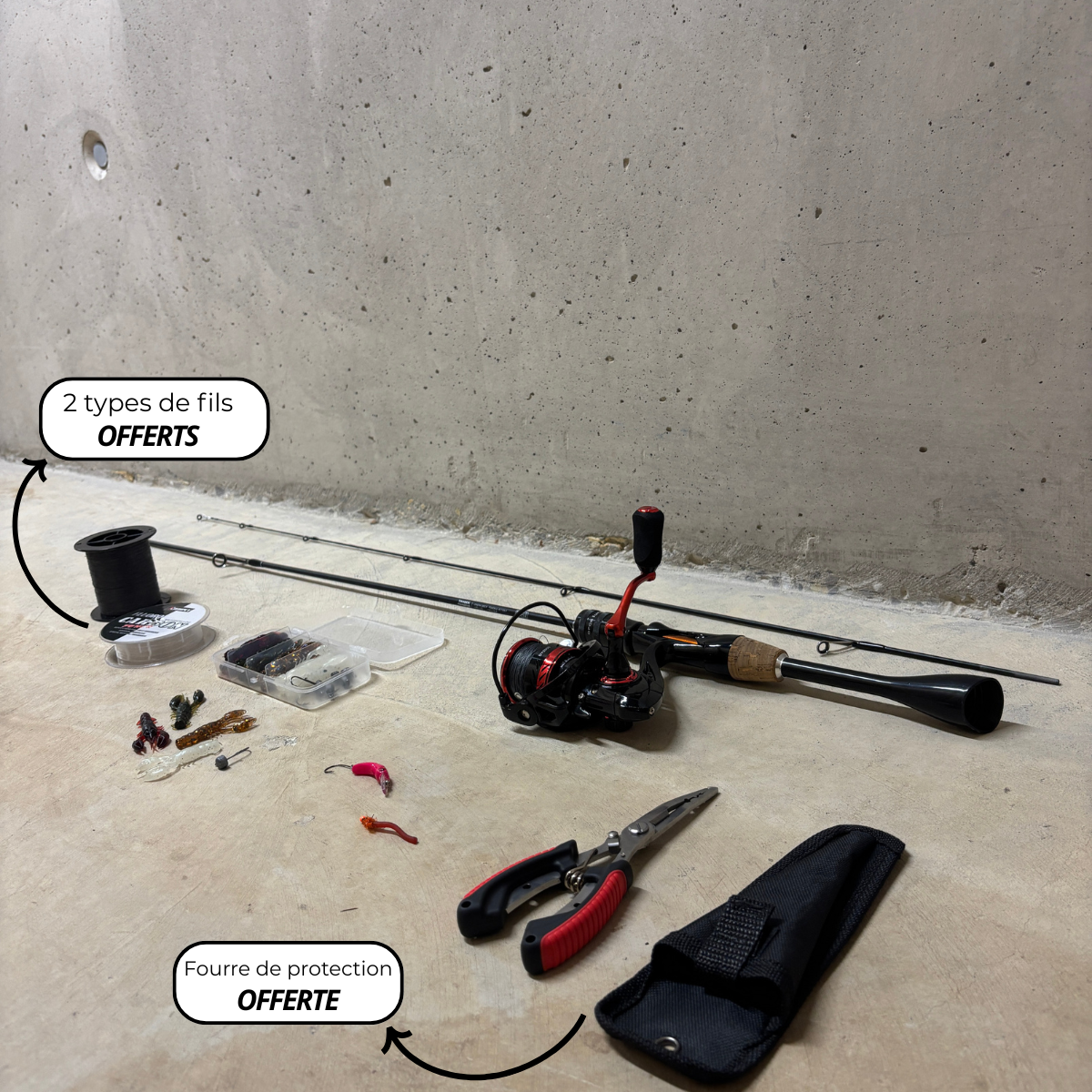 Oui. Le pack contient la canne, le moulinet, la tresse et une sélection de leurres testés pour les lacs. Tu peux pêcher dès réception, sans rien acheter de plus.