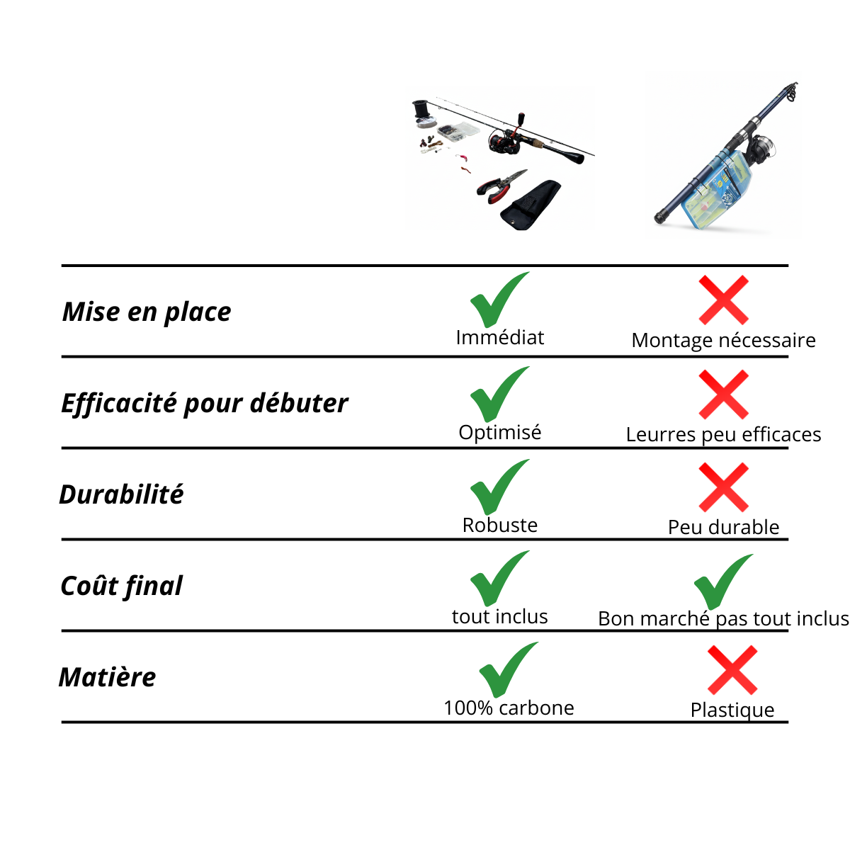 - Canne et moulinet adaptés aux débutants et intermédiaires